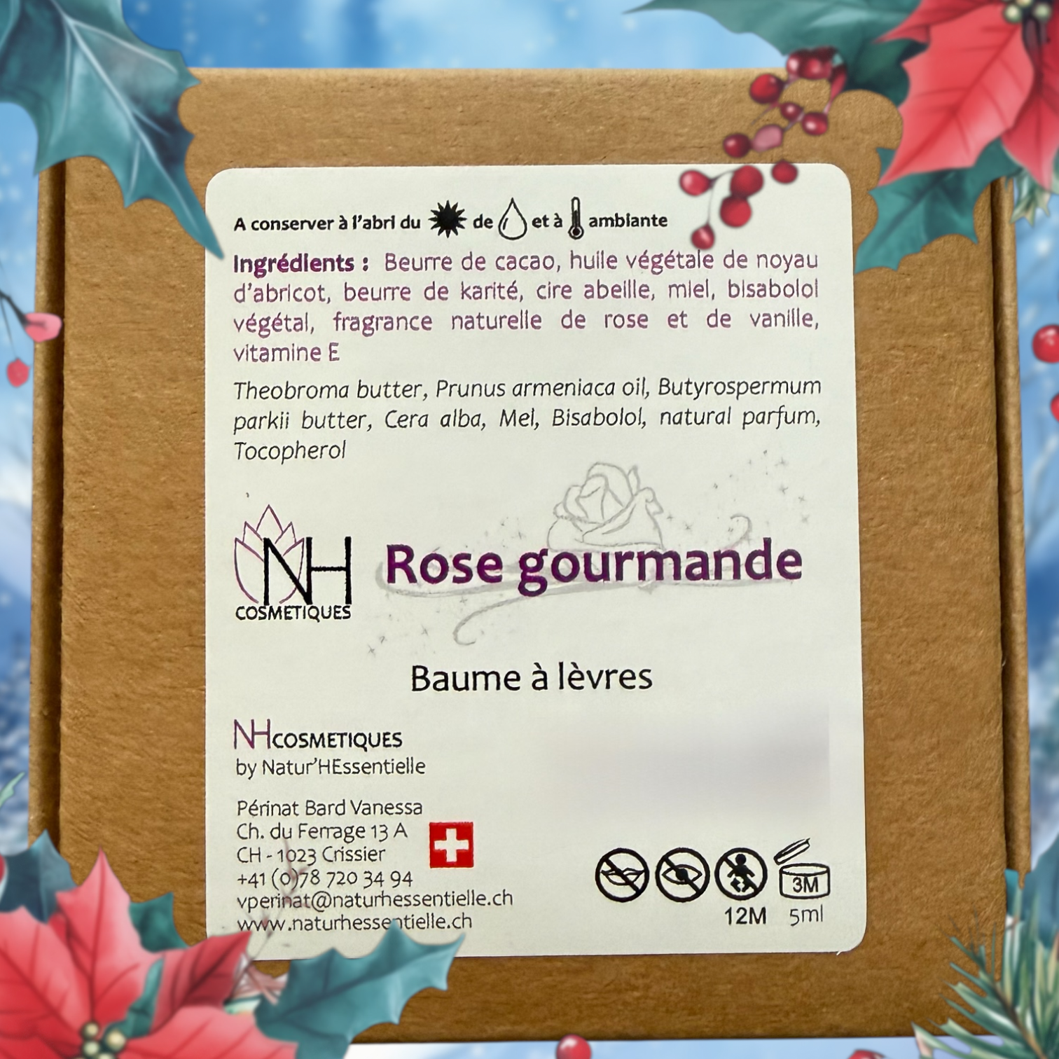 Baume à lèvres « Édition limitée de Noël » protecteur contre le vent et le froid, nourrissant et assouplissant. Soin gourmand des lèvres sèches à très sèches. Son parfum gourmand de vanille et de la subtilité de la rose vous envoûtera de bonheur. Ce baume est idéal pour soigner les lèvres sèches à très sèches. Sa boîte macaron fait de ce baume le cadeau parfait à offrir.